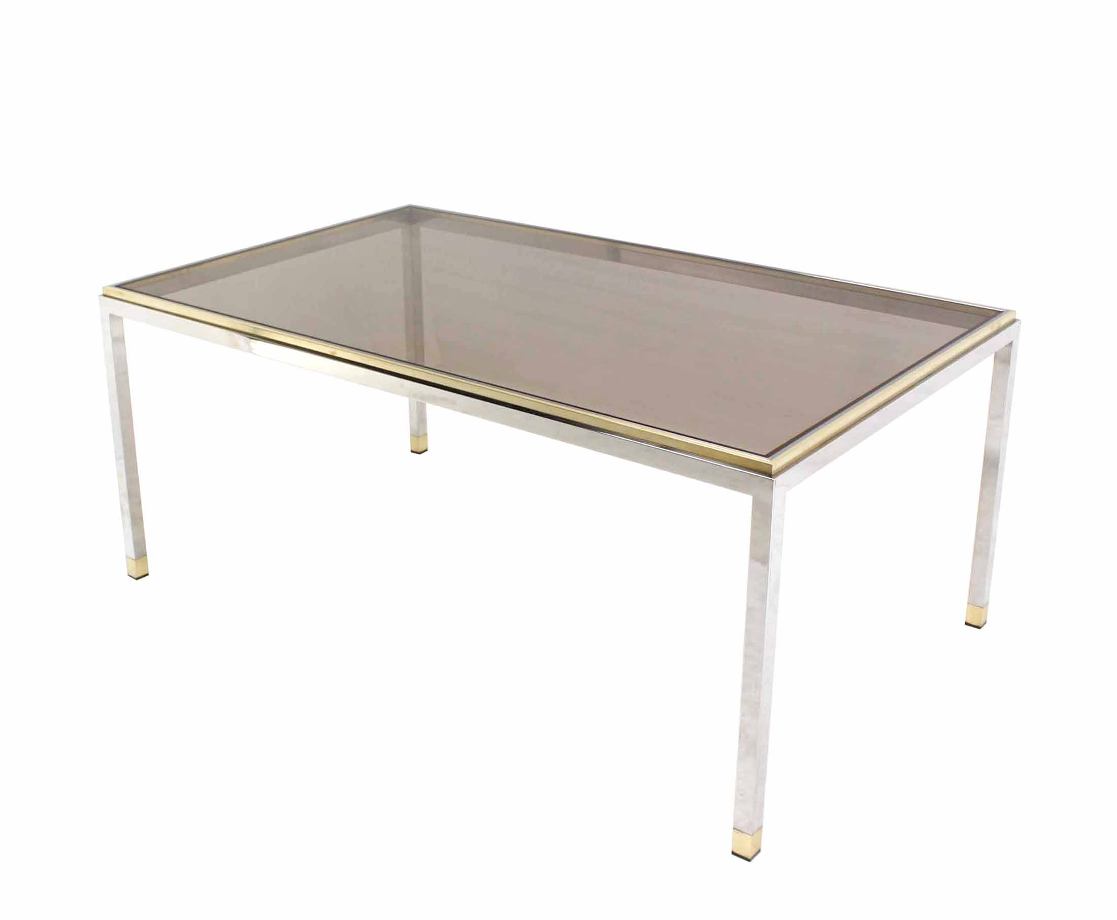 Brass Chrome Smoked Glass Top Rectangular Dining Table For Sale At 1stdibs
