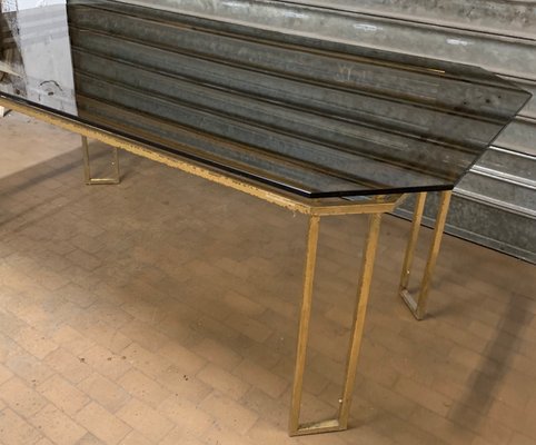 French Brass And Smoked Glass Dining Table 1970s For Sale At Pamono